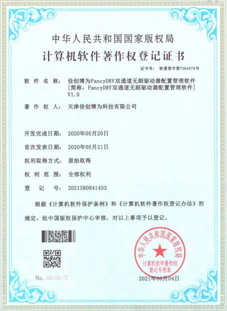 FancyDRV雙通道無刷驅(qū)動(dòng)器軟件著作權(quán)登記證書